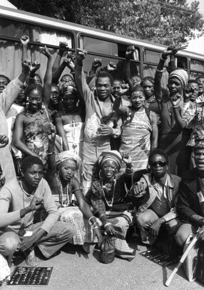 1974 After he enraged the Nigerian establishment, the army almost destroyed Kuti’s home while trying to arrest him.